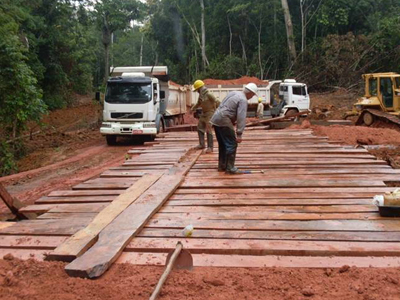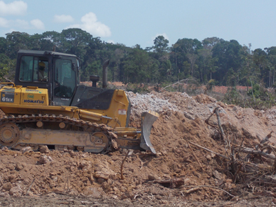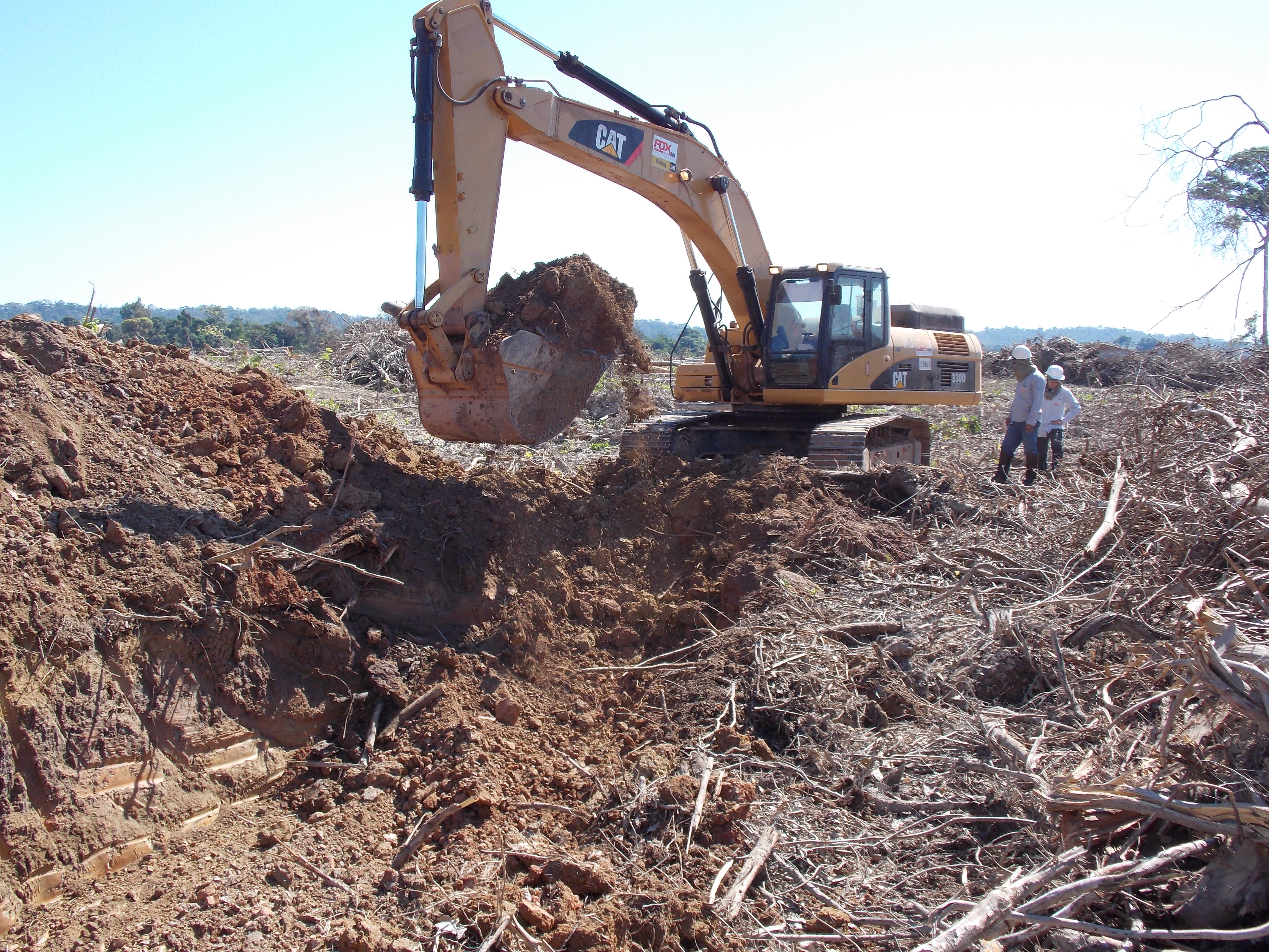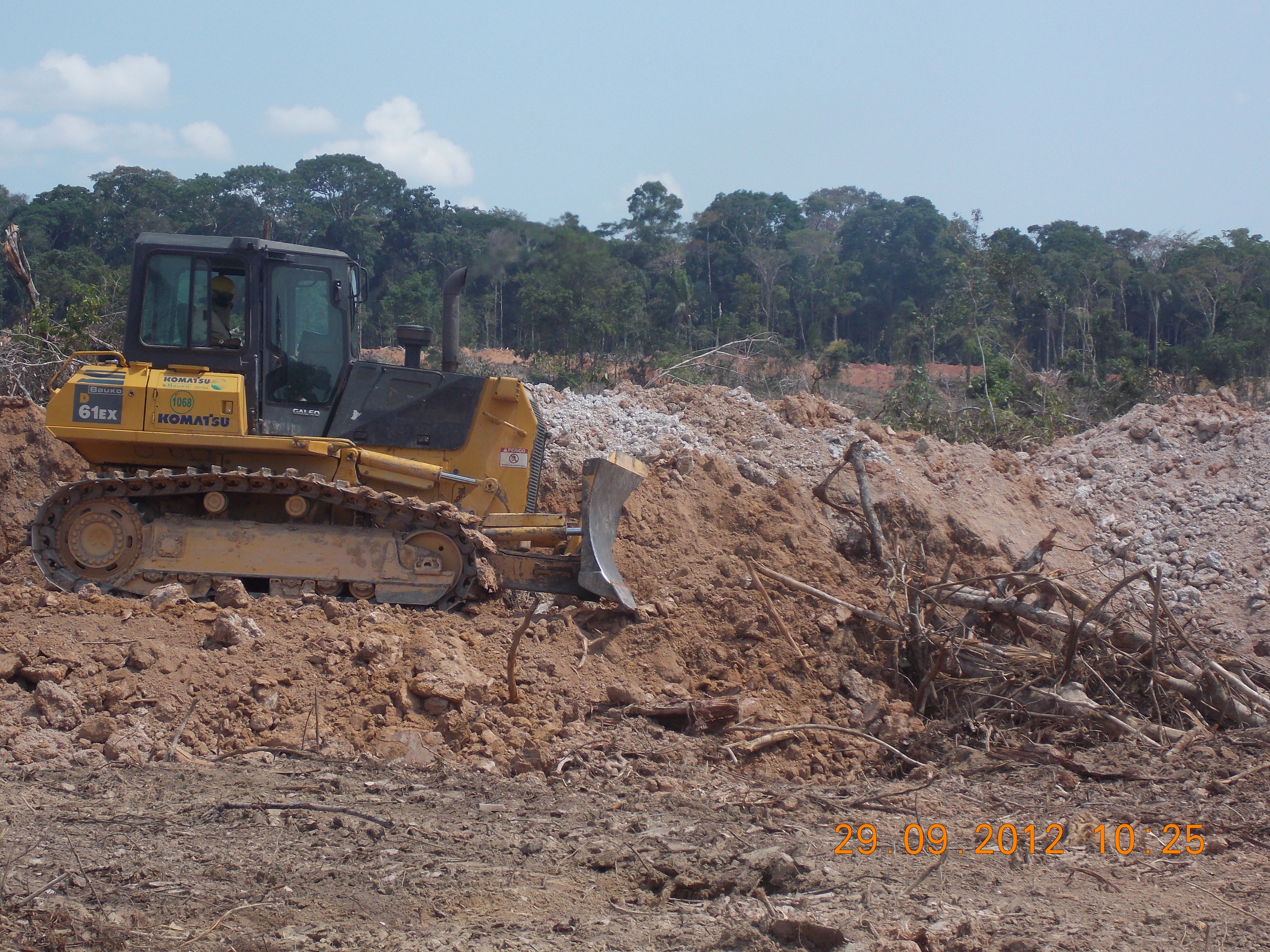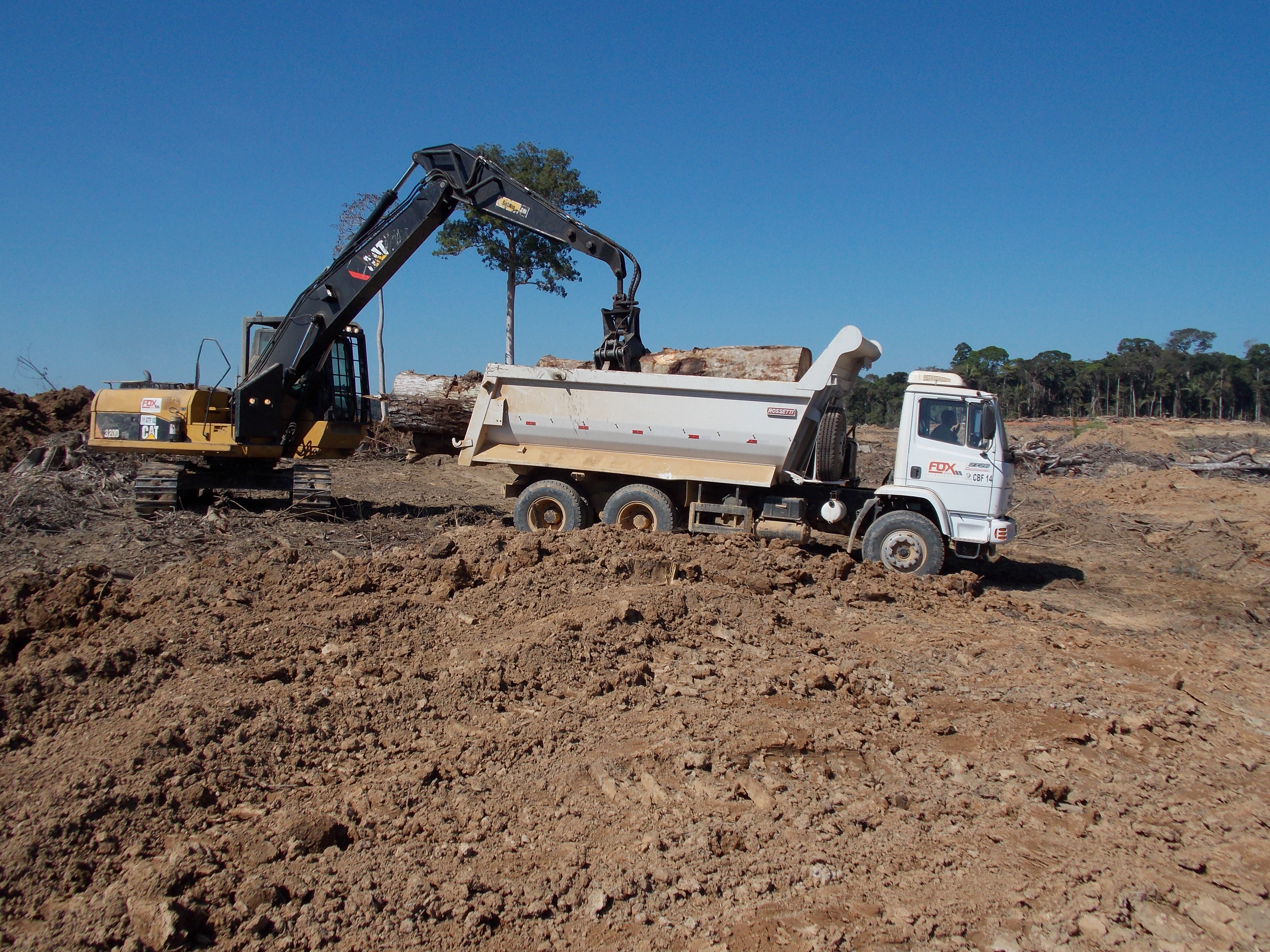 Supressão vegetal, traçamento, transporte e empilhamento de madeira.
