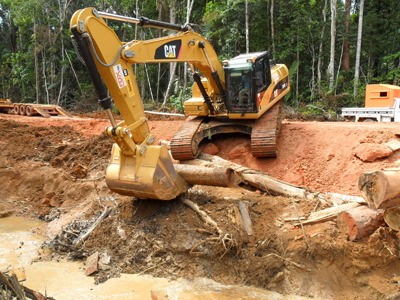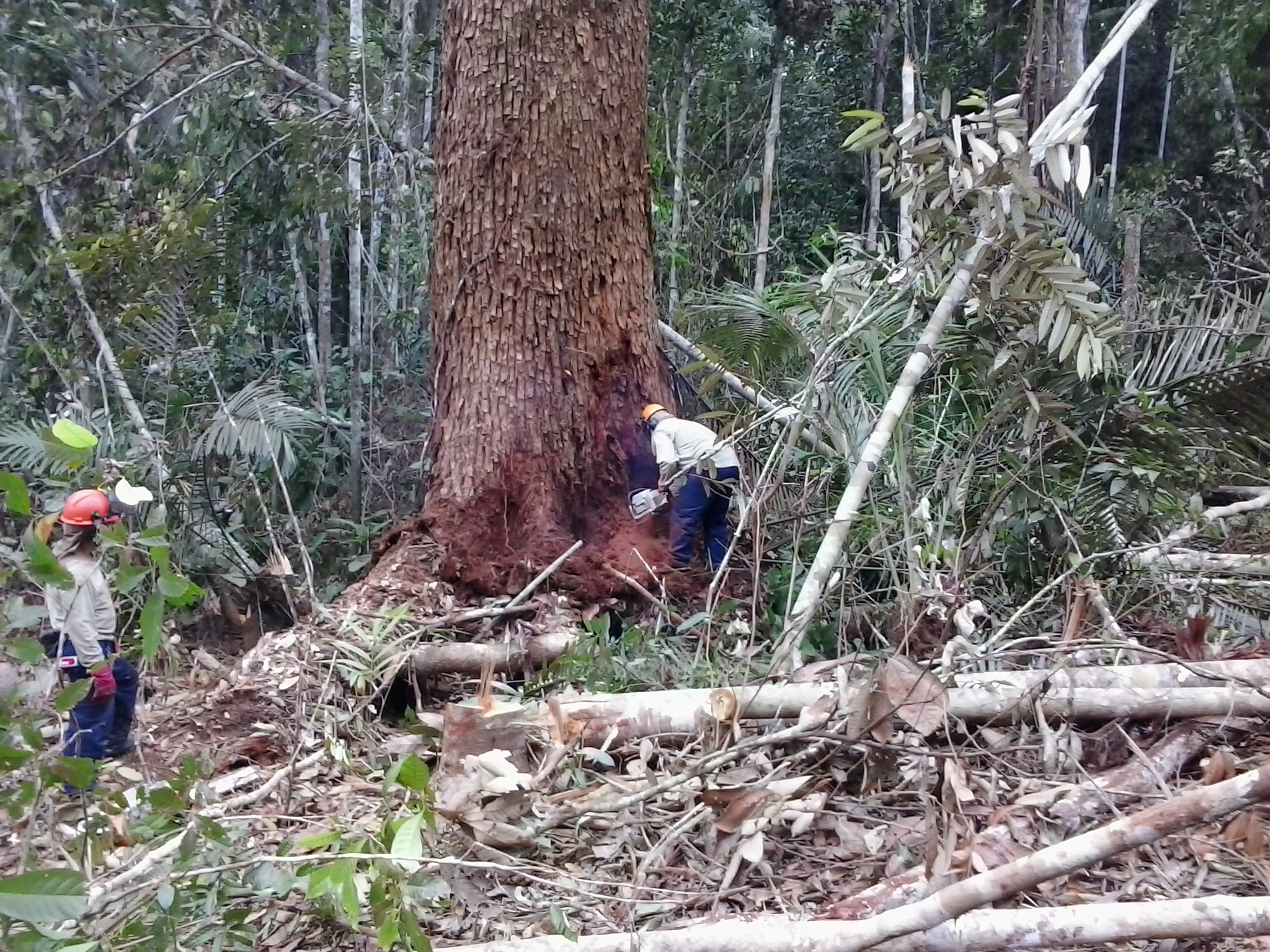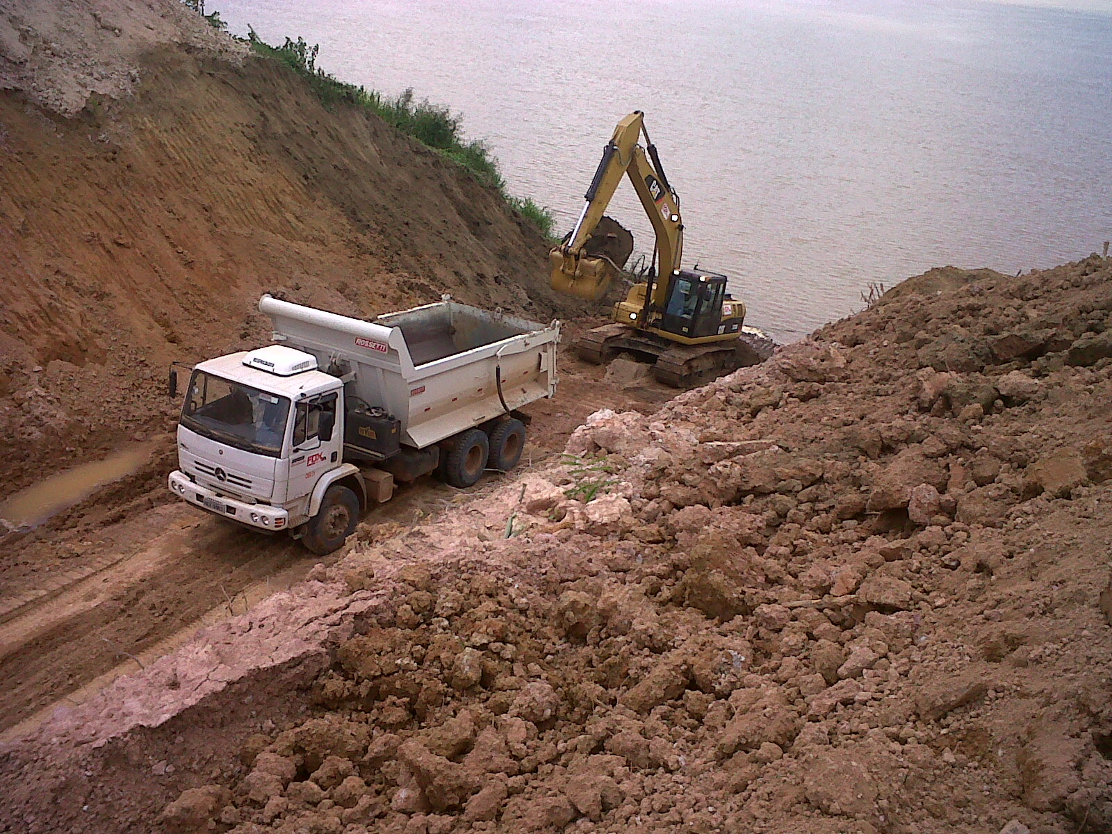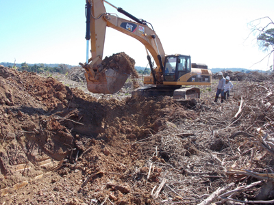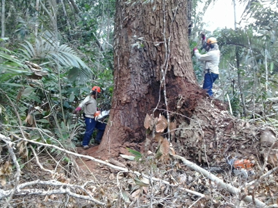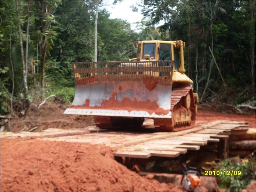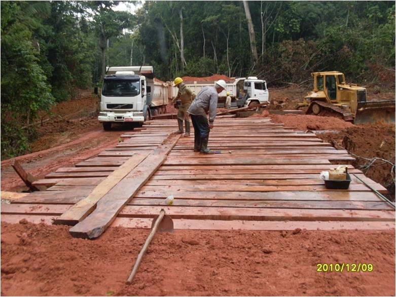 Supressão vegetal, traçamento, transporte e empilhamento de madeira.